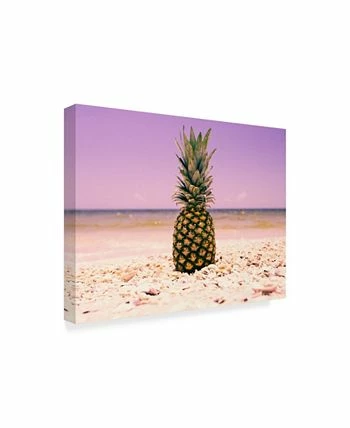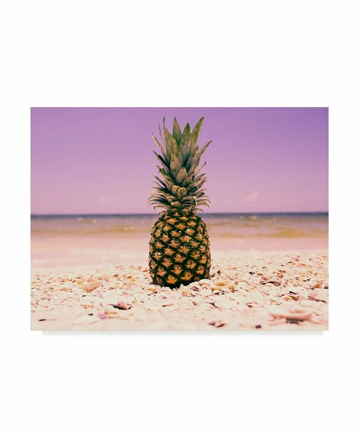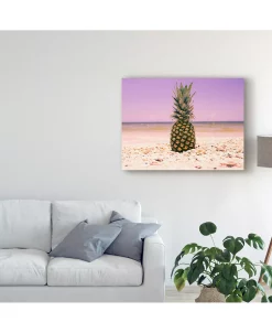 This ready to hang, gallery-wrapped art piece features a pineapple sitting in the sand. Gallery-wrap is a method of wrapping an artist’s canvas around a hidden, wooden frame allowing for a frameless presentation.