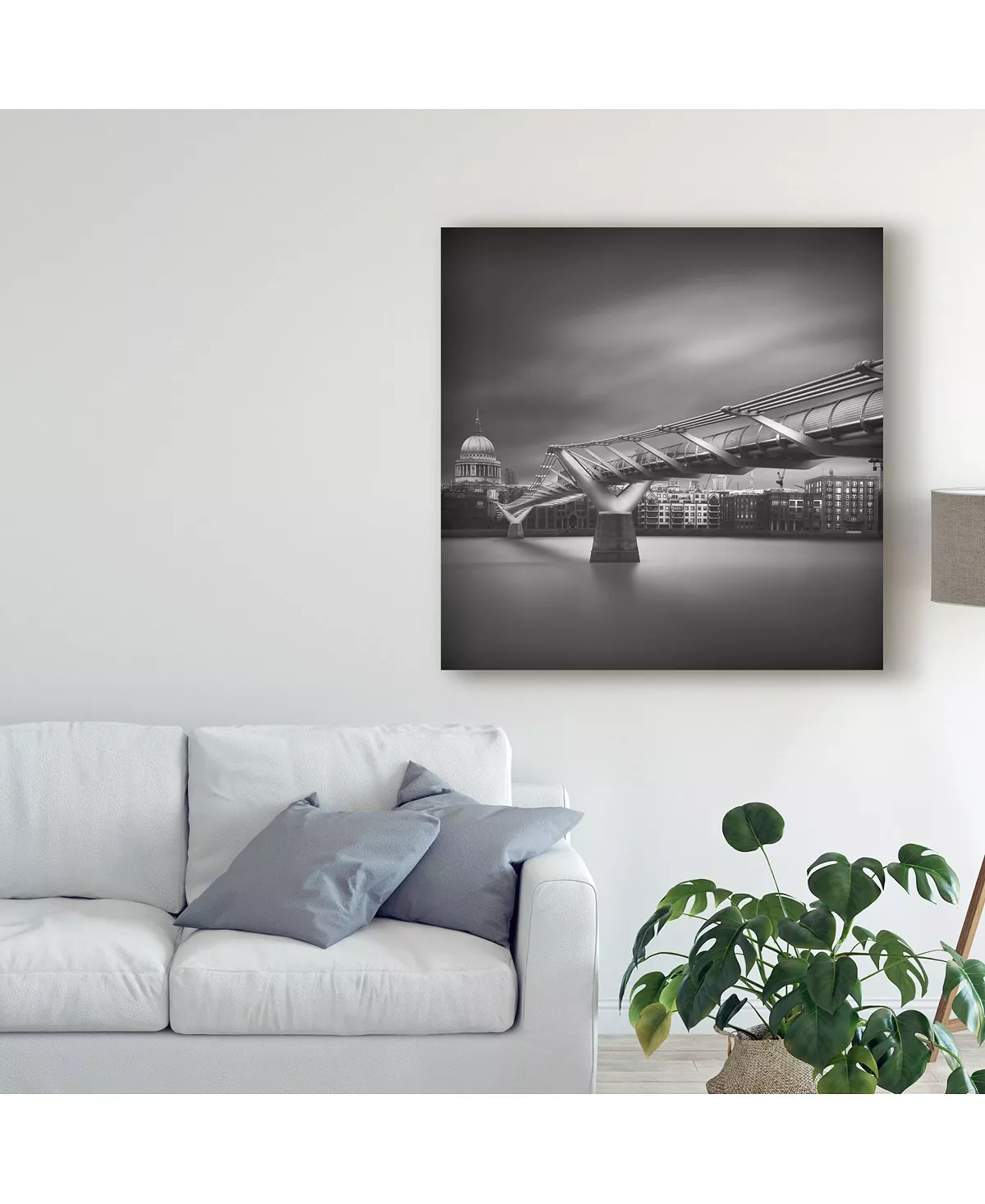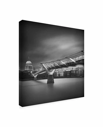 This ready to hang, gallery-wrapped art piece features a bridge running towards a city. Gallery-wrap is a method of wrapping an artist’s canvas around a hidden, wooden frame allowing for a frameless presentation.