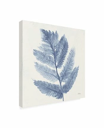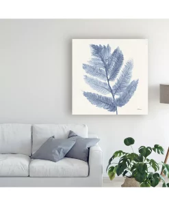 This ready to hang, gallery-wrapped art piece features a blue illustration of a fern frond. Gallery-wrap is a method of wrapping an artist’s canvas around a hidden, wooden frame allowing for a frameless presentation.