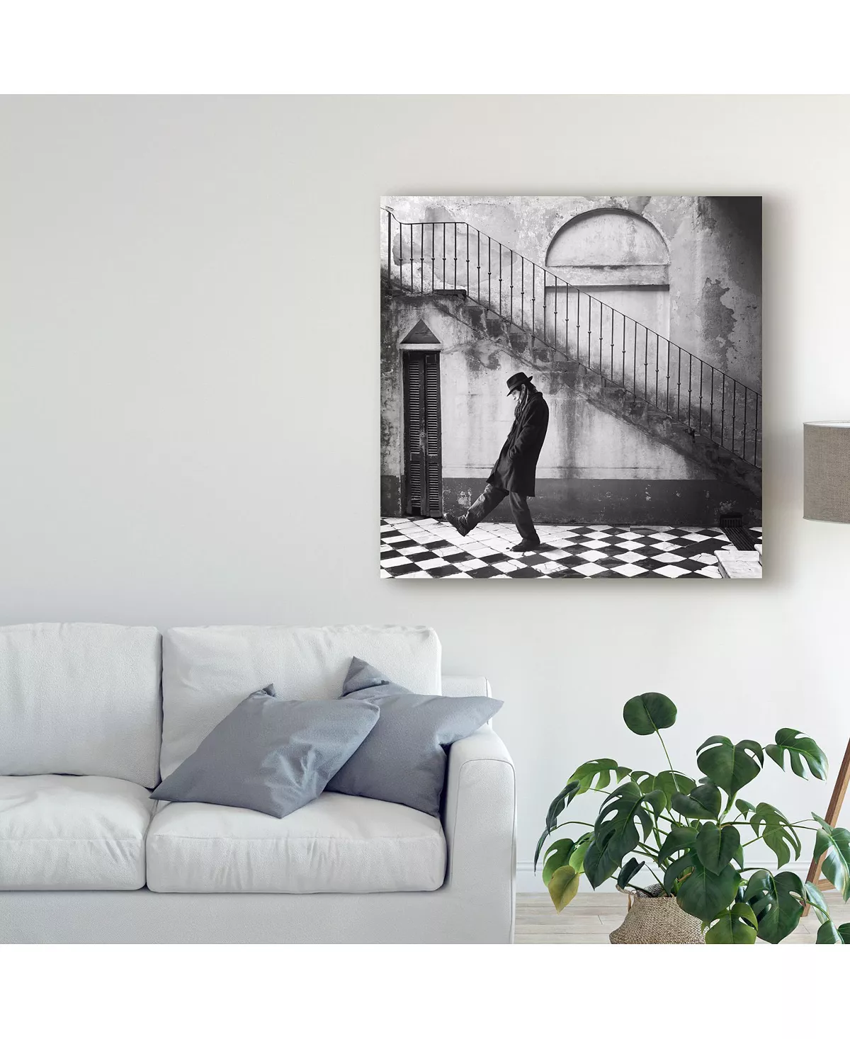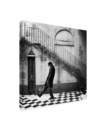 This ready to hang, gallery-wrapped art piece features a man walking in the center of the frame. Gallery-wrap is a method of wrapping an artist’s canvas around a hidden, wooden frame allowing for a frameless presentation.