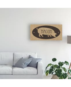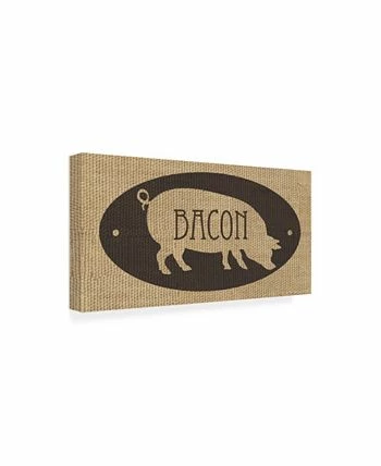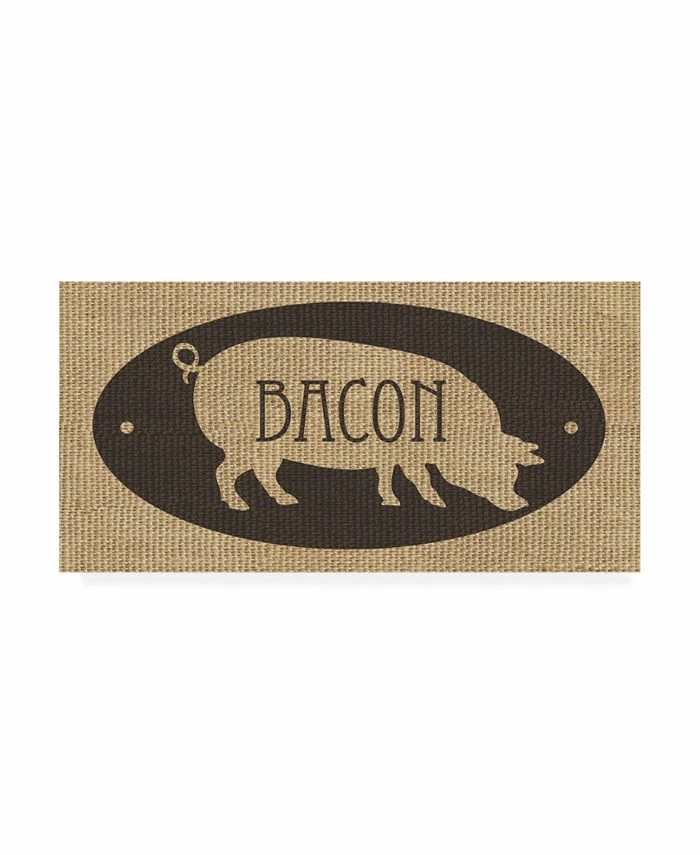 This ready to hang, gallery-wrapped art piece features a pig in the center of the frame with bacon over it. Gallery-wrap is a method of wrapping an artist’s canvas around a hidden, wooden frame allowing for a frameless presentation.