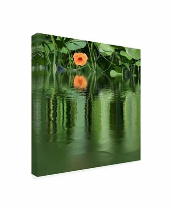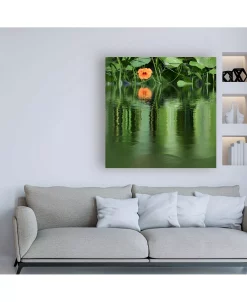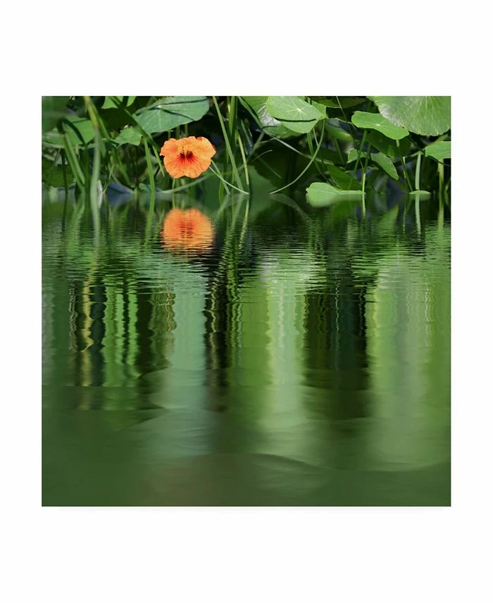 This ready to hang, gallery-wrapped art piece features a close up distorted photograph of lily pads and blossom on a pond. Gallery-wrap is a method of wrapping an artist’s canvas around a hidden, wooden frame allowing for a frameless presentation.