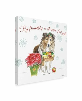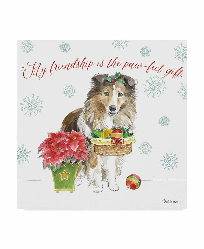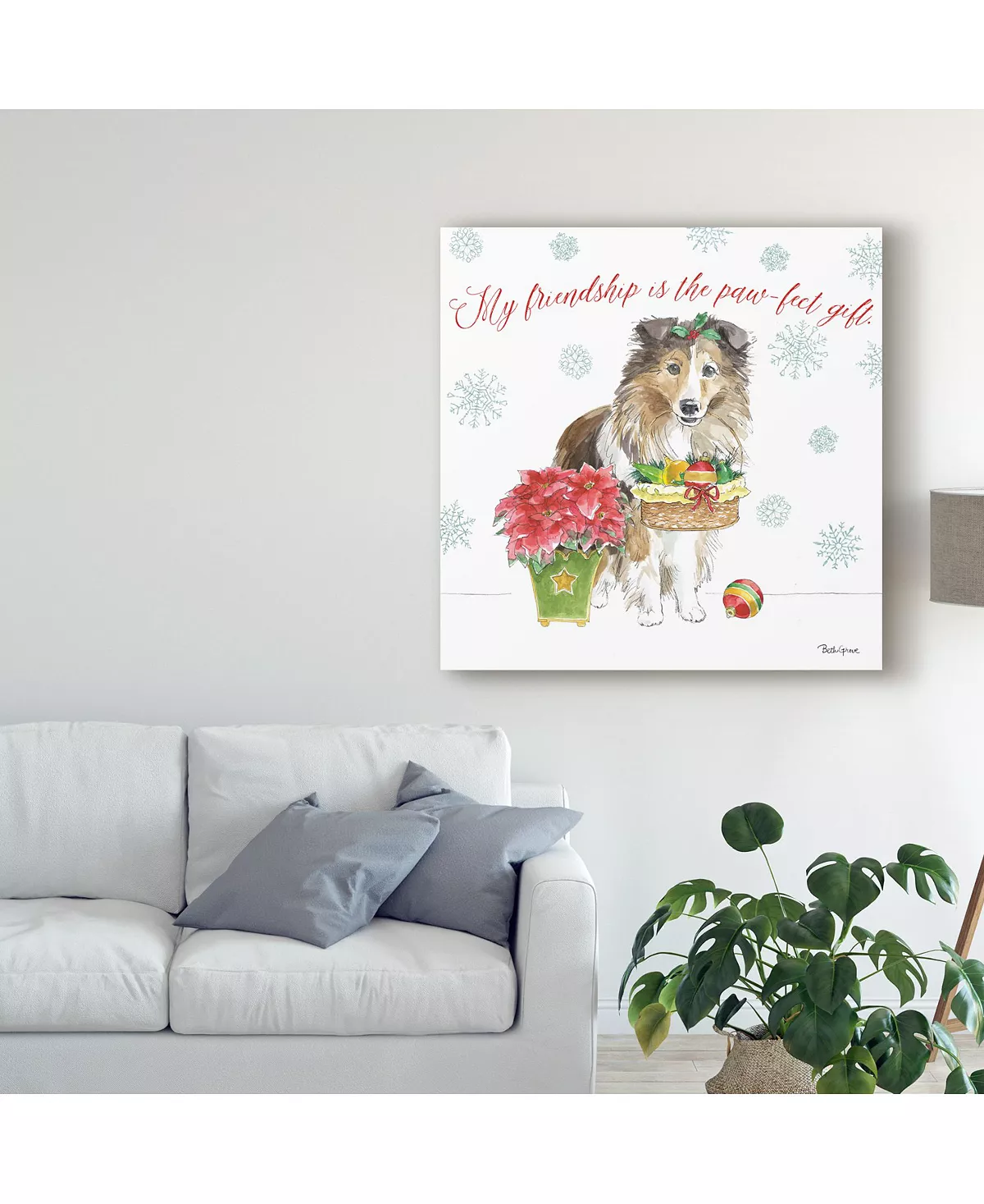 This ready to hang, gallery-wrapped art piece features the phrase “My friendship is the pawfect gift” above a dog. Gallery-wrap is a method of wrapping an artist’s canvas around a hidden, wooden frame allowing for a frameless presentation.