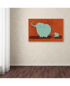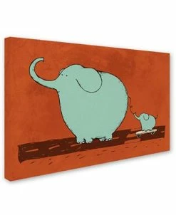 A precious pair of pachyderms is on a roll down a divided road in the ‘Skateboard Elephant’ canvas art print by Carla Martell from Trademark Global that combines serene shades with rusty hues.