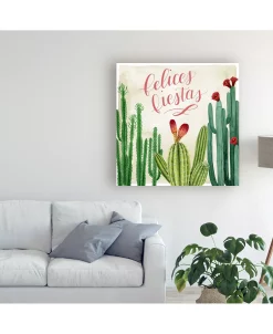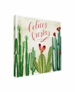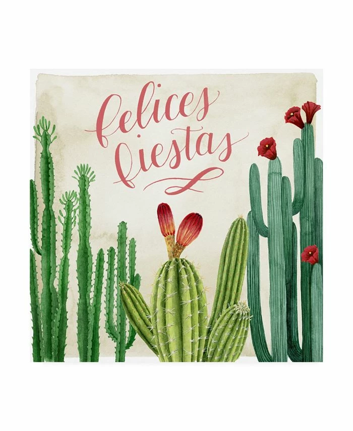 This ready to hang, gallery-wrapped art piece features red flowers on the top of cacti under a phrase. Gallery-wrap is a method of wrapping an artist’s canvas around a hidden, wooden frame allowing for a frameless presentation.
