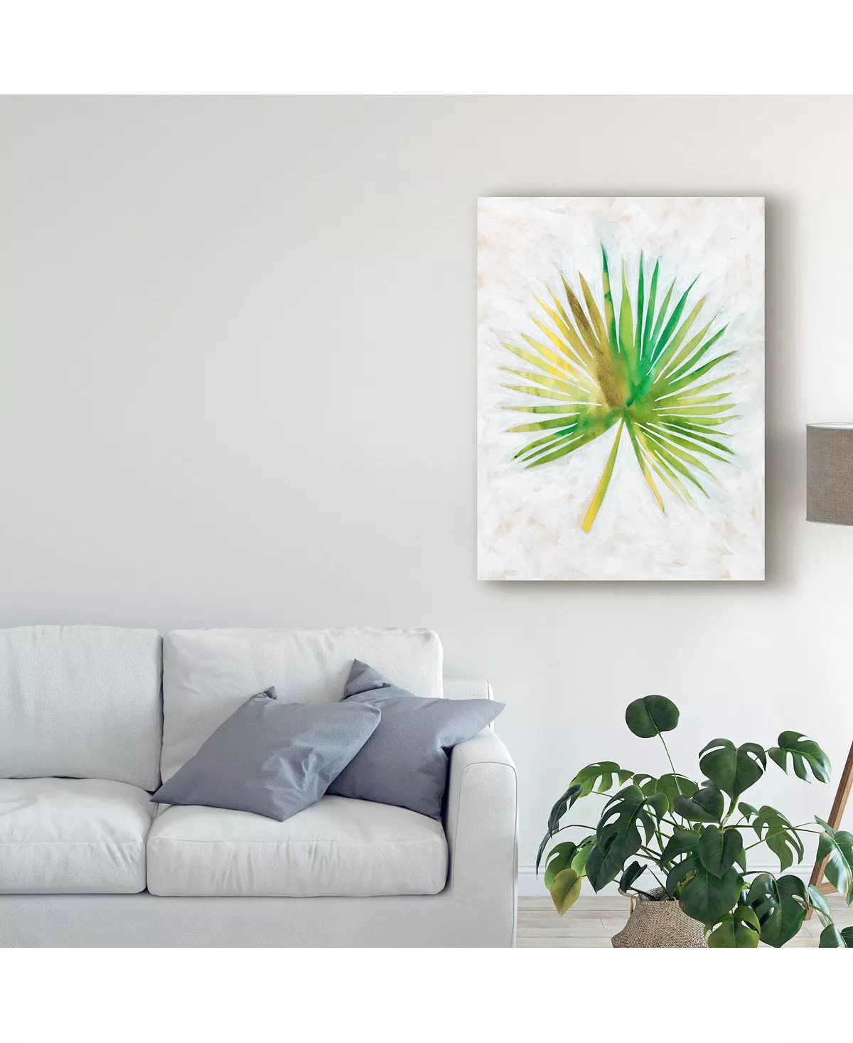 This ready to hang, gallery-wrapped art piece features a blue and green leaf in the center of the frame. Gallery-wrap is a method of wrapping an artist’s canvas around a hidden, wooden frame allowing for a frameless presentation.