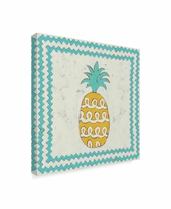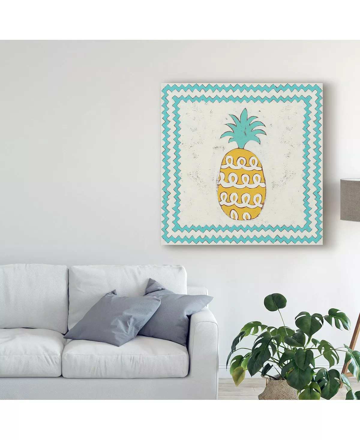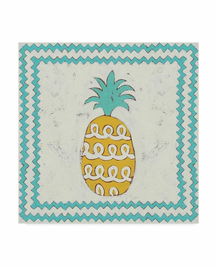 This ready to hang, gallery-wrapped art piece features a pineapple in the center of the frame. Gallery-wrap is a method of wrapping an artist’s canvas around a hidden, wooden frame allowing for a frameless presentation.