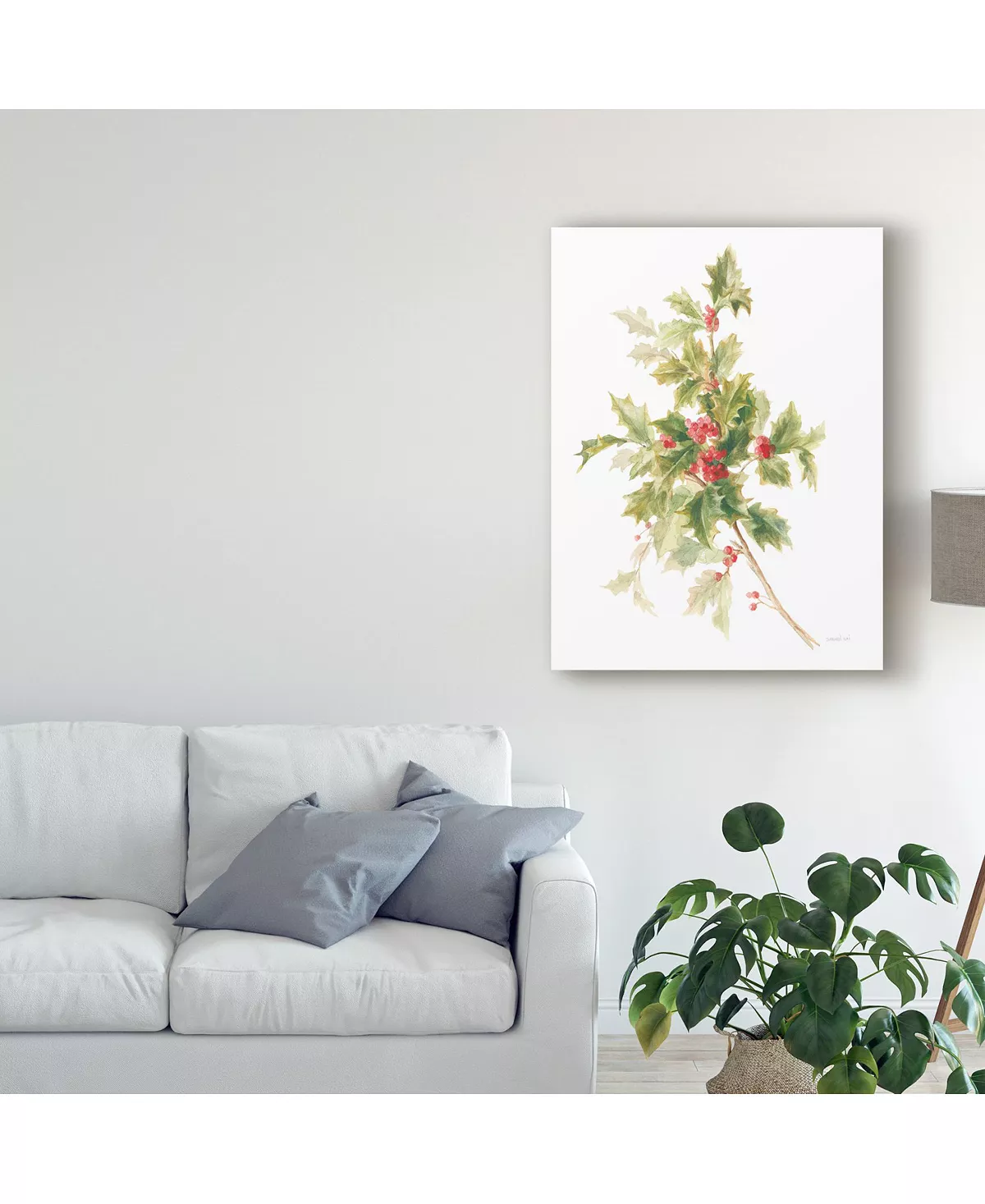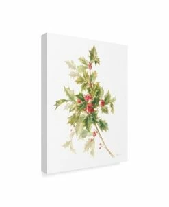 This ready to hang, gallery-wrapped art piece features a cluster of holly with red berries. Gallery-wrap is a method of wrapping an artist’s canvas around a hidden, wooden frame allowing for a frameless presentation.