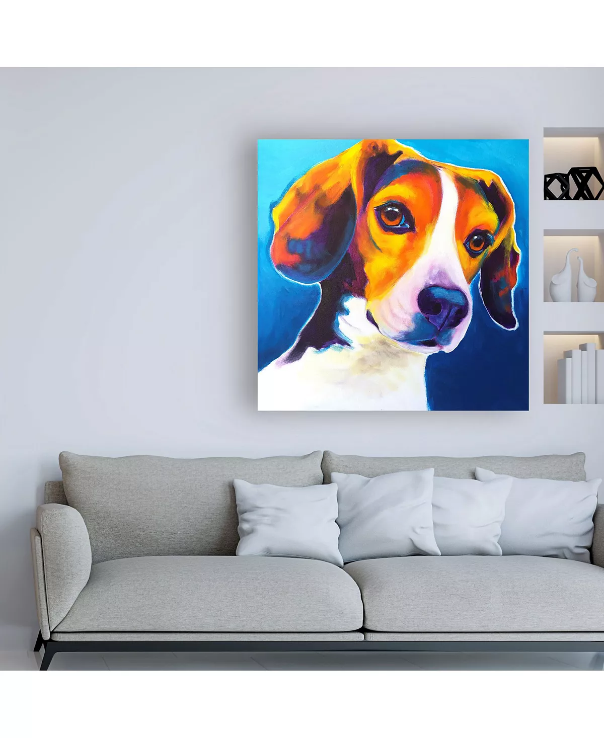 This ready to hang, gallery-wrapped art piece features a vibrant and colorful pop art piece of a beagle with a dark background. Gallery-wrap is a method of wrapping an artist’s canvas around a hidden, wooden frame allowing for a frameless presentation.