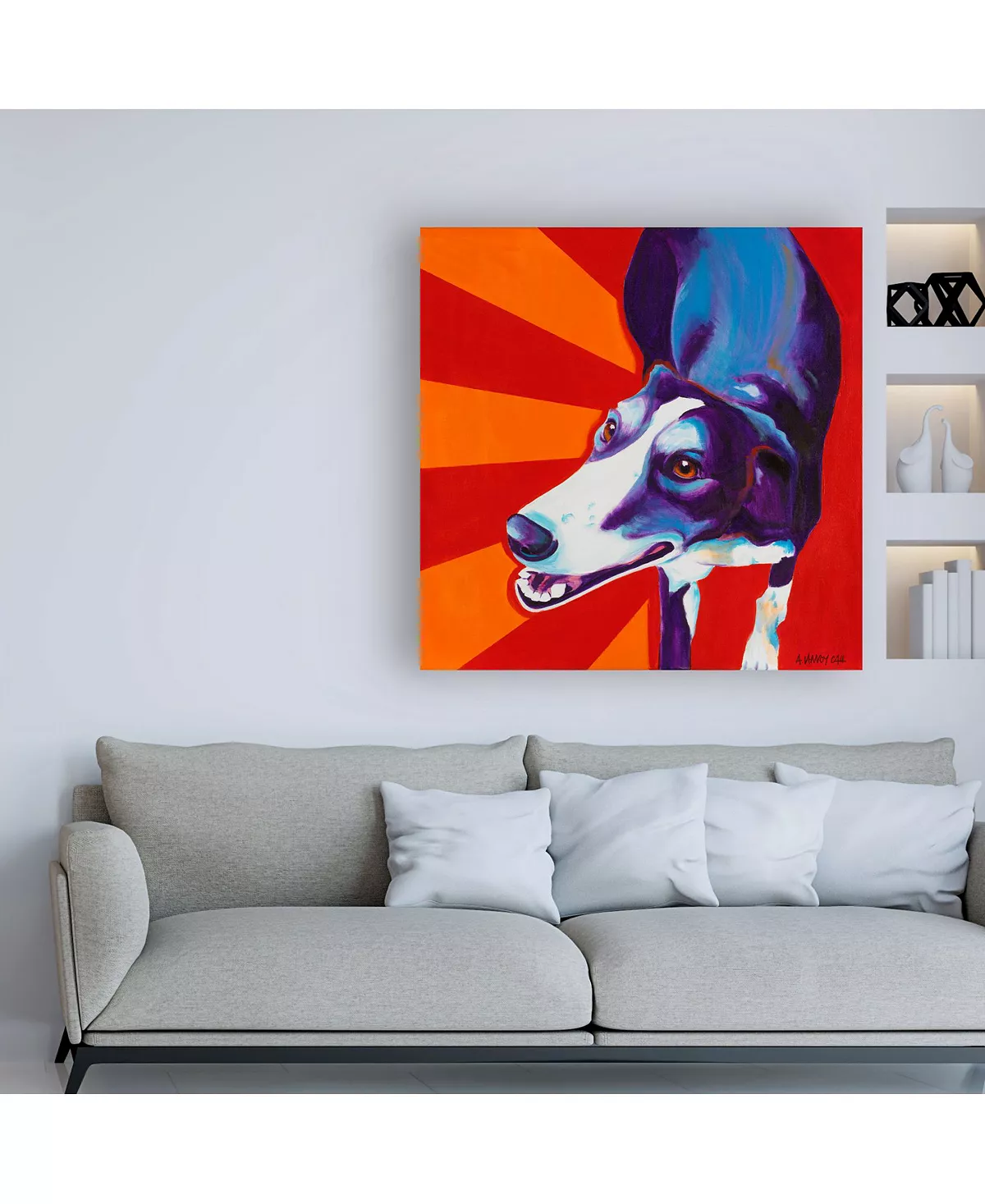 This ready to hang, gallery-wrapped art piece features a vibrant and colorful pop art piece of a greyhound. Gallery-wrap is a method of wrapping an artist’s canvas around a hidden, wooden frame allowing for a frameless presentation.