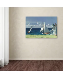 This ready to hang, gallery-wrapped art piece features boats sailing in the water next to a coastline with a house on it. Edward Hopper, born 1882 and died 1967, was a printmaker and fine artist inspired by the style of American Realism. Better known for his oil paintings he was still very proficient in other mediums such as etching and water colors.