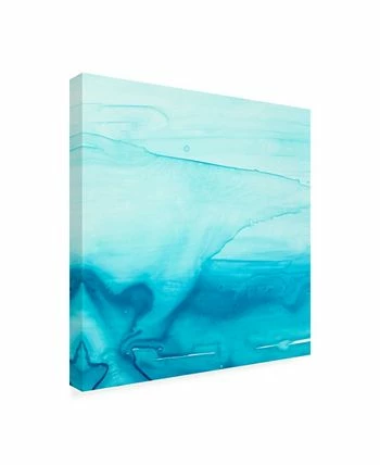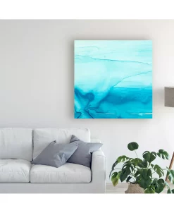 This ready to hang, gallery-wrapped art piece features layers of watercolor forming waves in shades of blue. Gallery-wrap is a method of wrapping an artist’s canvas around a hidden, wooden frame allowing for a frameless presentation.