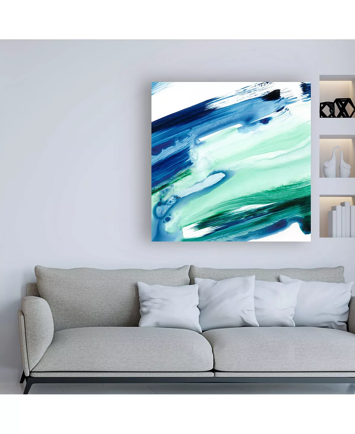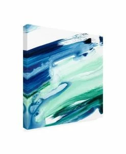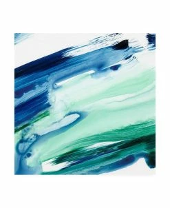 This ready to hang, gallery-wrapped art piece features a blue and green fluid brush painting. Gallery-wrap is a method of wrapping an artist’s canvas around a hidden, wooden frame allowing for a frameless presentation.