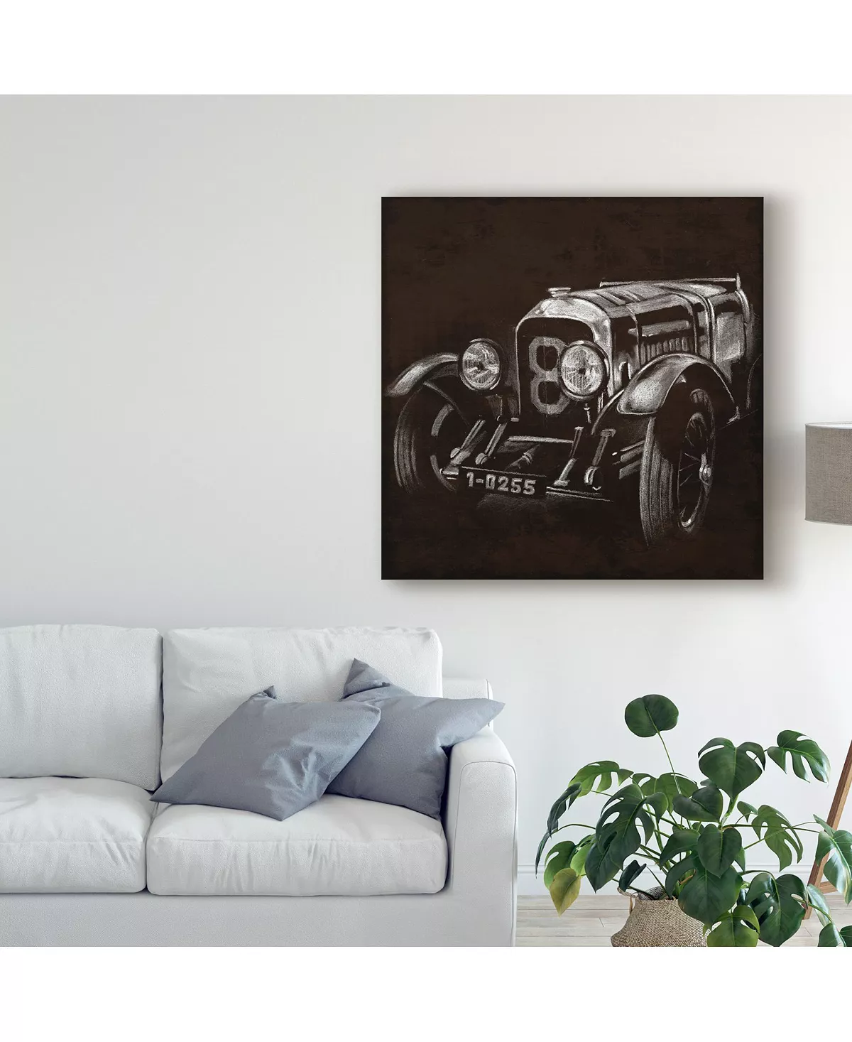 This ready to hang, gallery-wrapped art piece features the front end of a vintage car. Gallery-wrap is a method of wrapping an artist’s canvas around a hidden, wooden frame allowing for a frameless presentation.