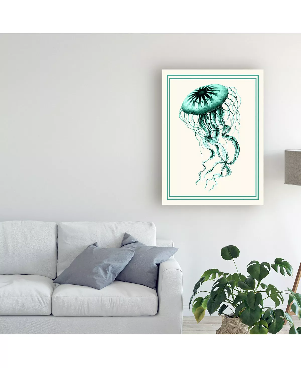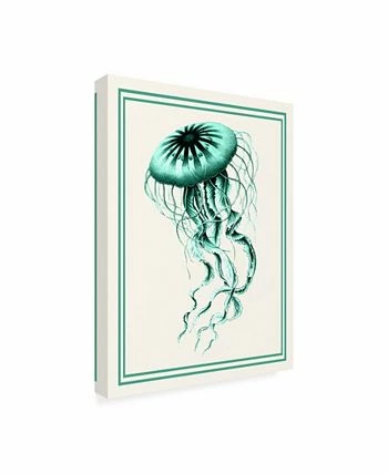 This ready to hang, gallery-wrapped art piece features a blue jellyfish in the center of a line frame. Gallery-wrap is a method of wrapping an artist’s canvas around a hidden, wooden frame allowing for a frameless presentation.