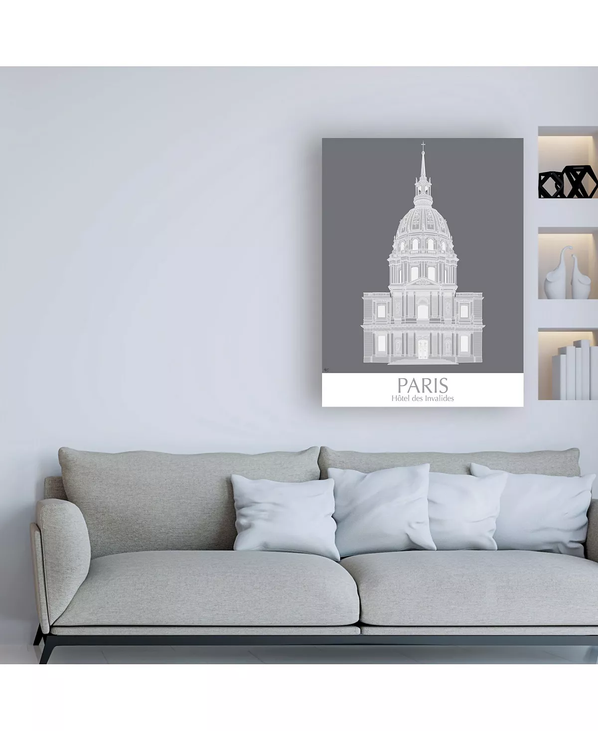 This ready to hang, gallery-wrapped art piece features a monochrome image of Paris Les Invalides. Gallery-wrap is a method of wrapping an artist’s canvas around a hidden, wooden frame allowing for a frameless presentation.