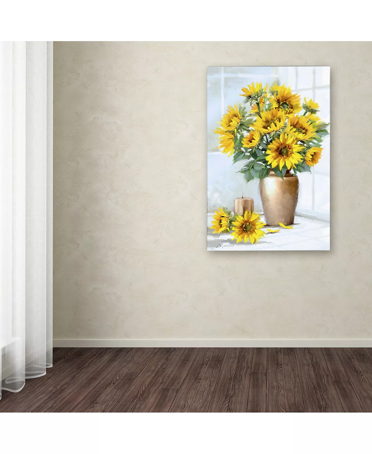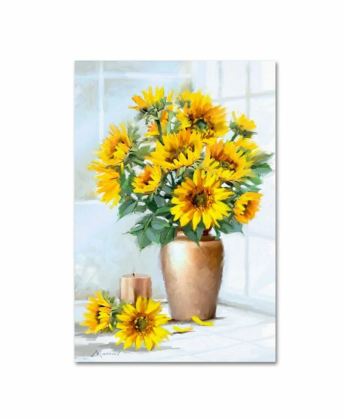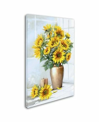 This ready to hang, gallery-wrapped art piece features a vase full of yellow sunflowers. Gallery wrap is a method of stretching an artist’s canvas so that the canvas wraps around the sides and is secured a hidden, wooden frame this allows for a frameless presentation of the finished painting.