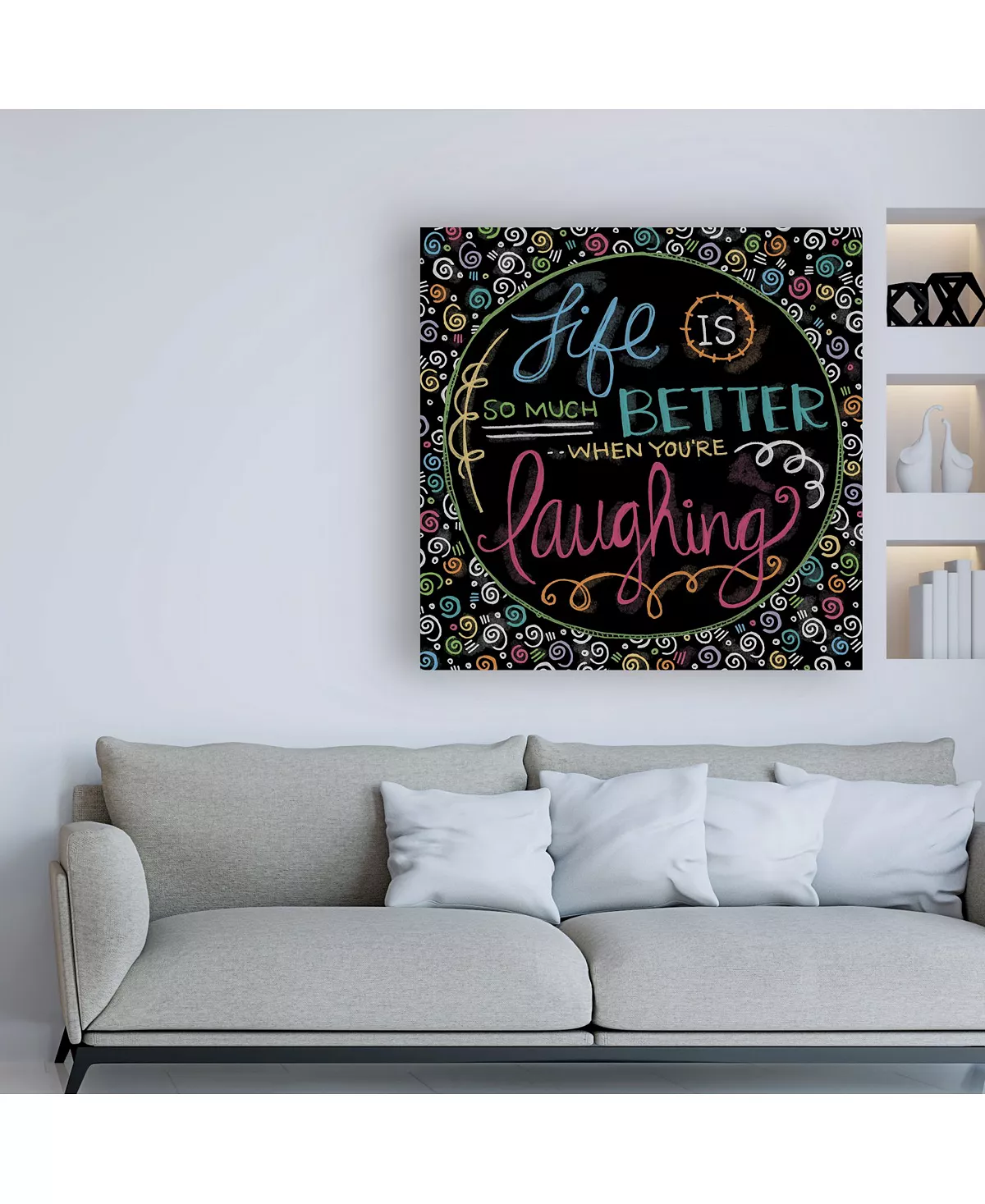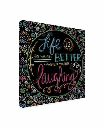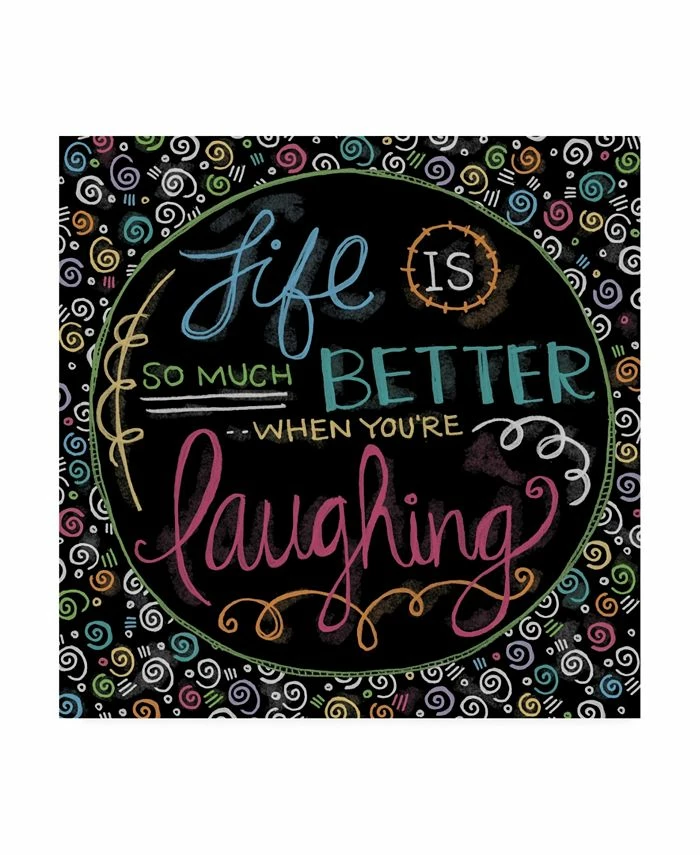 This ready to hang, gallery-wrapped art piece features “life is so much better when you’re laughing” written on a chalkboard. Gallery-wrap is a method of wrapping an artist’s canvas around a hidden, wooden frame allowing for a frameless presentation.