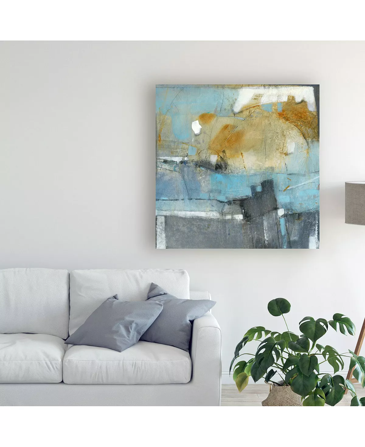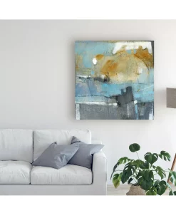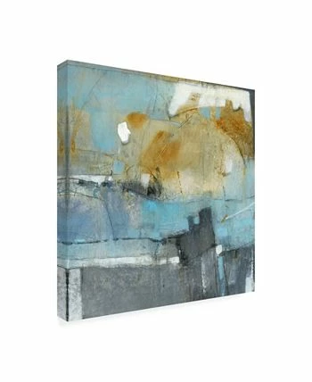 This ready to hang, gallery-wrapped art piece features brown and gray shapes of paint filling the frame. Gallery-wrap is a method of wrapping an artist’s canvas around a hidden, wooden frame allowing for a frameless presentation.