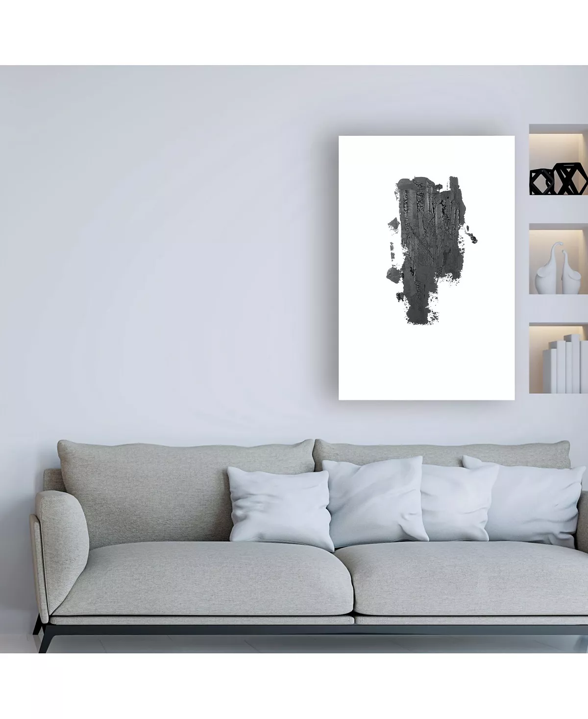 This ready to hang, gallery-wrapped art piece features black paint streaked over a white background. Gallery-wrap is a method of wrapping an artist’s canvas around a hidden, wooden frame allowing for a frameless presentation.