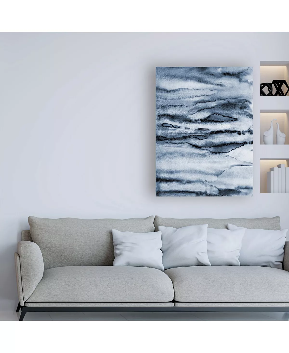 This ready to hang, gallery-wrapped art piece features blue watercolor paint over a light background. Gallery-wrap is a method of wrapping an artist’s canvas around a hidden, wooden frame allowing for a frameless presentation.