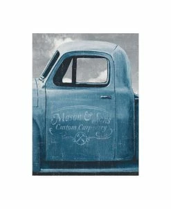 This ready to hang, gallery-wrapped art piece features the cab of a vintage blue truck. Gallery-wrap is a method of wrapping an artist’s canvas around a hidden, wooden frame allowing for a frameless presentation.