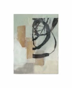 This ready to hang, gallery-wrapped art piece features brown and black abstract paint filling a composition. Gallery-wrap is a method of wrapping an artist’s canvas around a hidden, wooden frame allowing for a frameless presentation.