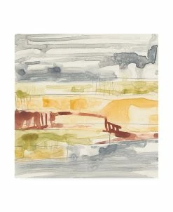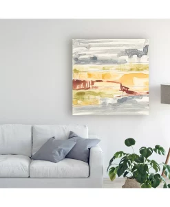 This ready to hang, gallery-wrapped art piece features yellow and gray abstract paint filling the frame. Gallery-wrap is a method of wrapping an artist’s canvas around a hidden, wooden frame allowing for a frameless presentation.