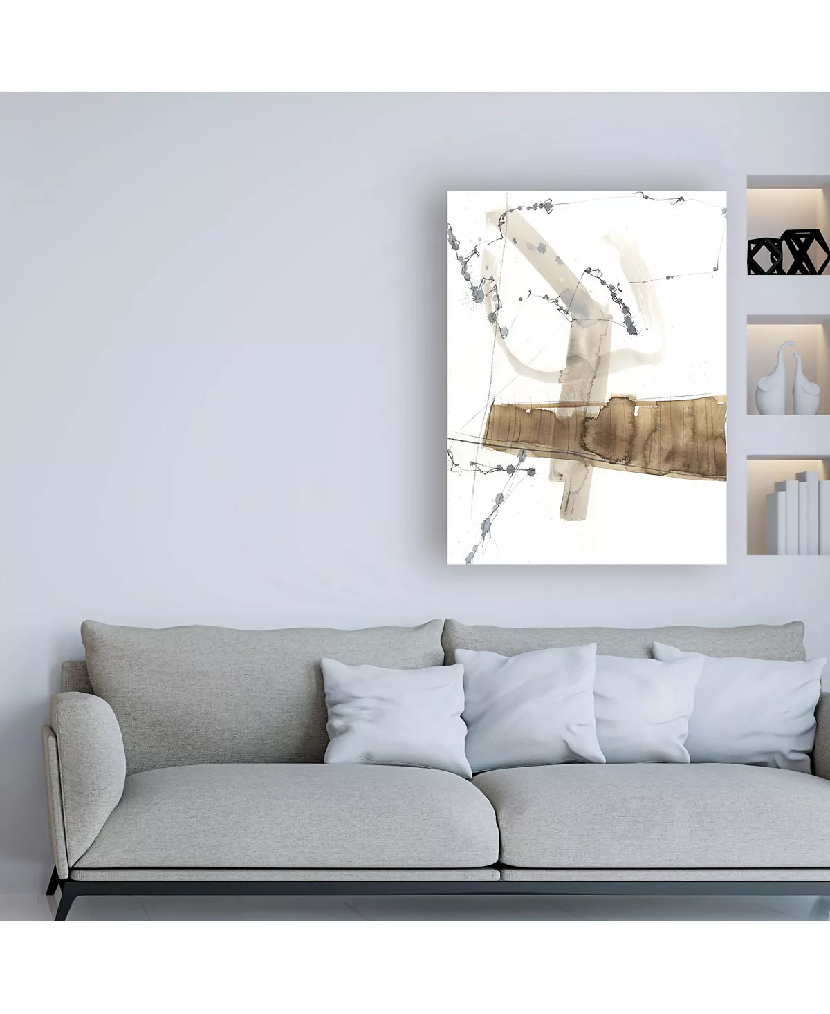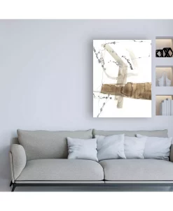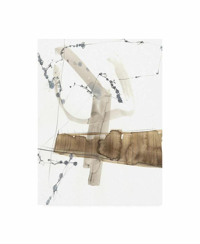 This ready to hang, gallery-wrapped art piece features gray and brown abstract paint over a white background. Gallery-wrap is a method of wrapping an artist’s canvas around a hidden, wooden frame allowing for a frameless presentation.