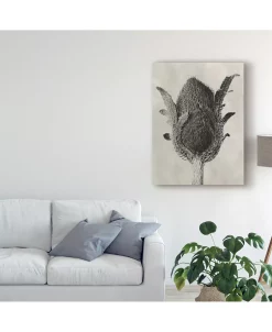 This ready to hang, gallery-wrapped art piece features a black and white botanical image on a grey background. Gallery-wrap is a method of wrapping an artist’s canvas around a hidden, wooden frame allowing for a frameless presentation.