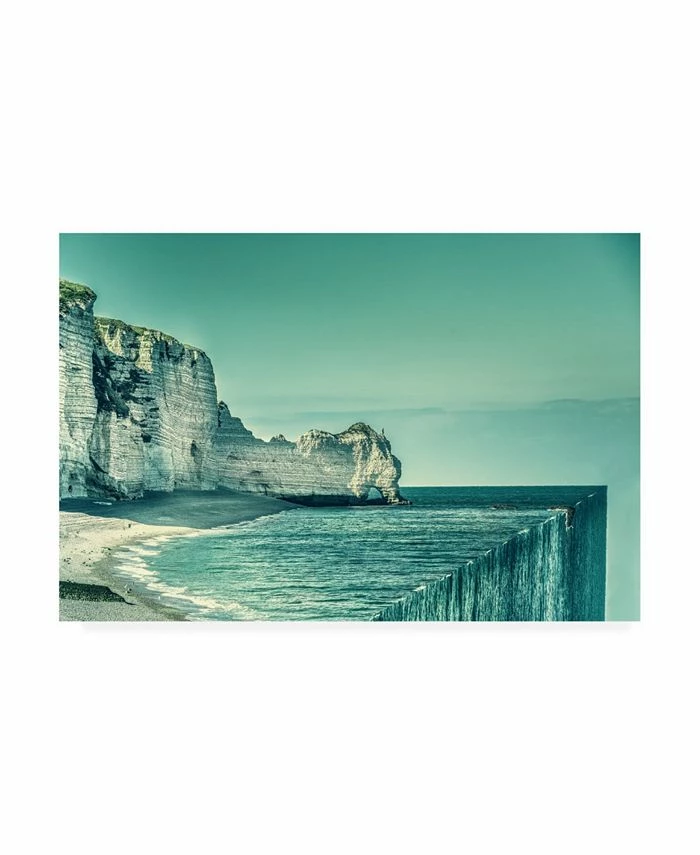 This ready to hang, gallery-wrapped art piece features the end of earth with water rolling off the side. Gallery-wrap is a method of wrapping an artist’s canvas around a hidden, wooden frame allowing for a frameless presentation.