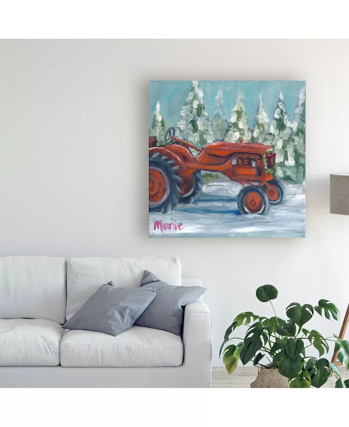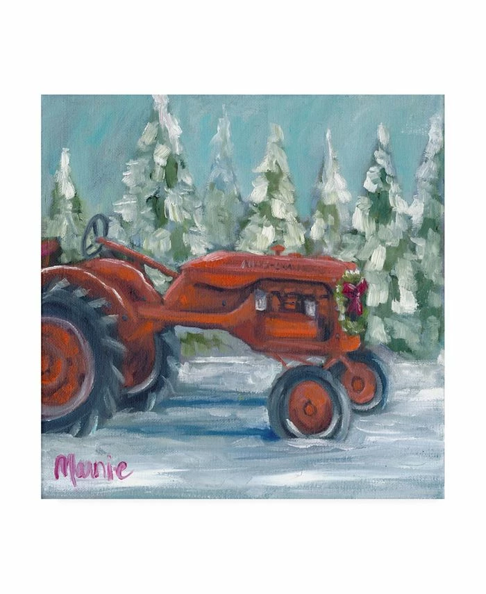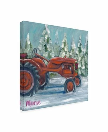 This ready to hang, gallery-wrapped art piece features a red tractor over a winter forest landscape. Gallery-wrap is a method of wrapping an artist’s canvas around a hidden, wooden frame allowing for a frameless presentation.