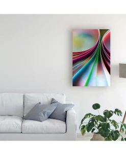 This ready to hang, gallery-wrapped art piece features abstract colorful shapes filling the frame. Gallery-wrap is a method of wrapping an artist’s canvas around a hidden, wooden frame allowing for a frameless presentation.