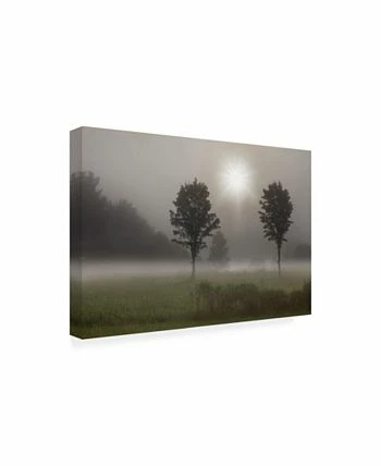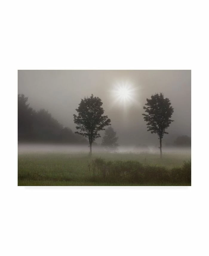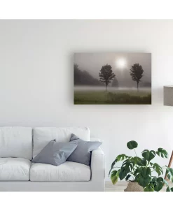 This ready to hang, gallery-wrapped art piece features two trees on a foggy field. Gallery-wrap is a method of wrapping an artist’s canvas around a hidden, wooden frame allowing for a frameless presentation.