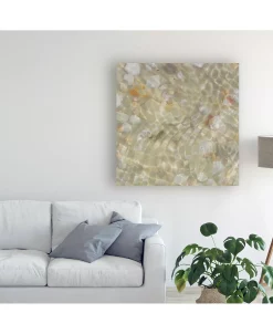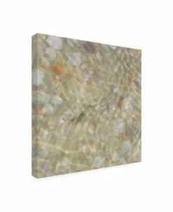 This ready to hang, gallery-wrapped art piece features beige and white abstract paint filling a composition. Gallery-wrap is a method of wrapping an artist’s canvas around a hidden, wooden frame allowing for a frameless presentation.