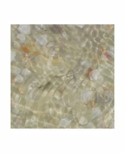 This ready to hang, gallery-wrapped art piece features beige and white abstract paint filling a composition. Gallery-wrap is a method of wrapping an artist’s canvas around a hidden, wooden frame allowing for a frameless presentation.