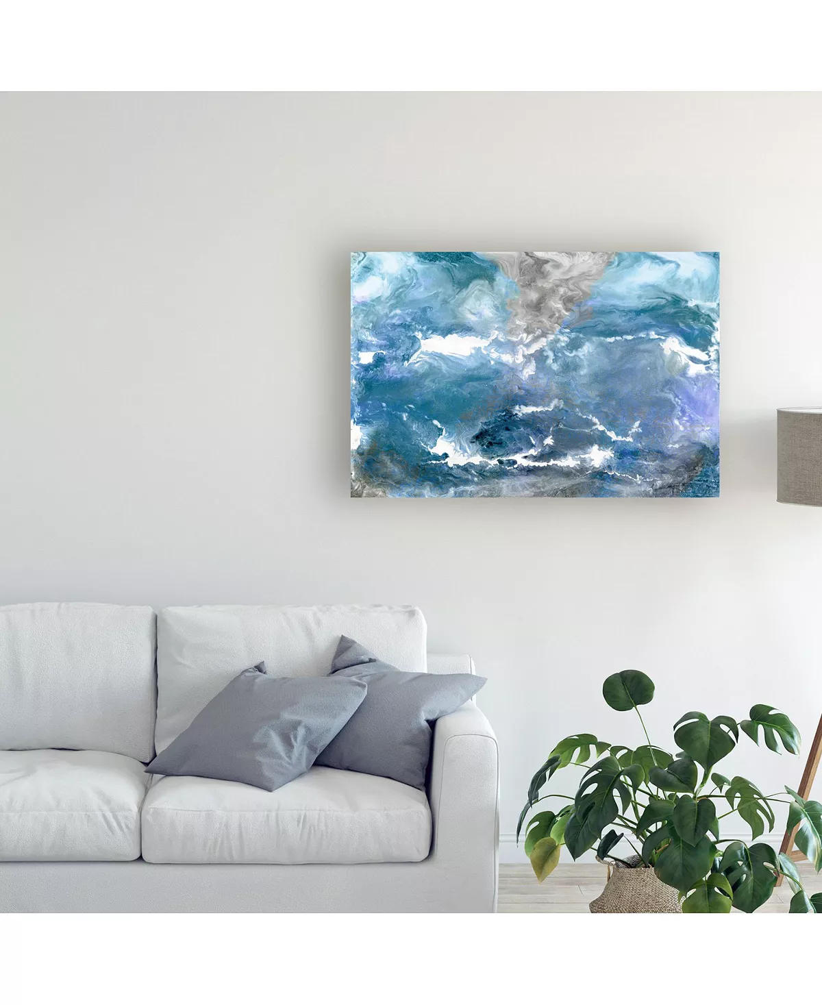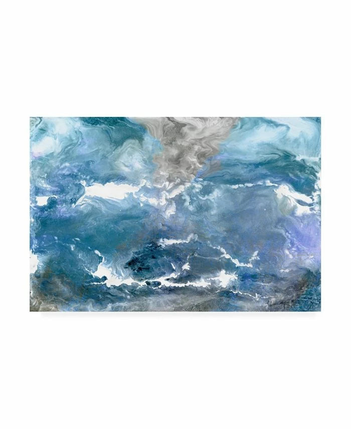This ready to hang, gallery-wrapped art piece features cloudy blue paint filling the frame. Gallery-wrap is a method of wrapping an artist’s canvas around a hidden, wooden frame allowing for a frameless presentation.