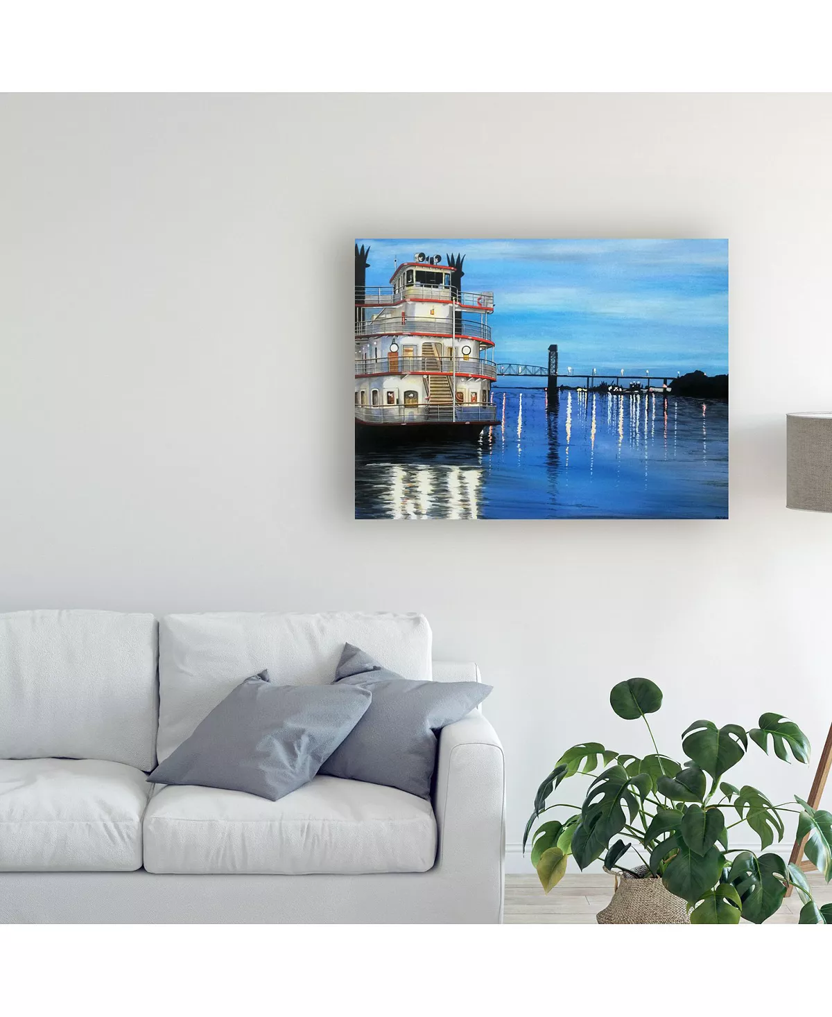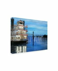 This ready to hang, gallery-wrapped art piece features a boat on the left side of a coastline. Gallery-wrap is a method of wrapping an artist’s canvas around a hidden, wooden frame allowing for a frameless presentation.