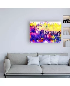 This ready to hang, gallery-wrapped art piece features a brightly colored image of midtown Manhattan. Gallery-wrap is a method of wrapping an artist’s canvas around a hidden, wooden frame allowing for a frameless presentation.