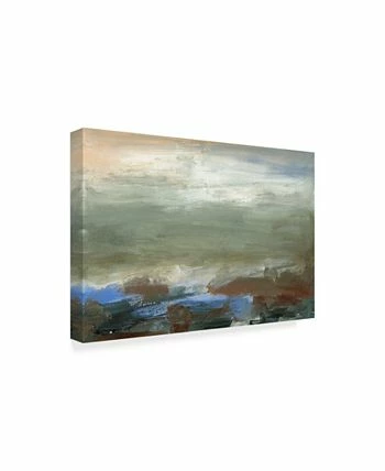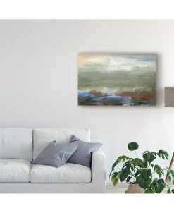 This ready to hang, gallery-wrapped art piece features a gray and brown abstract composition. Gallery-wrap is a method of wrapping an artist’s canvas around a hidden, wooden frame allowing for a frameless presentation.