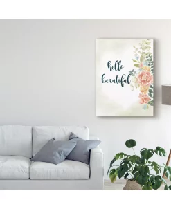 This ready to hang, gallery-wrapped art piece features typography with pink flowers next to it. Gallery-wrap is a method of wrapping an artist’s canvas around a hidden, wooden frame allowing for a frameless presentation.