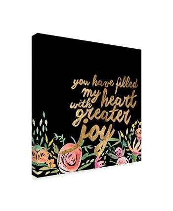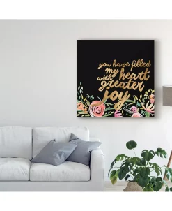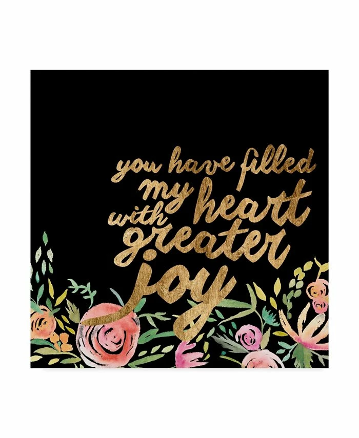 This ready to hang, gallery-wrapped art piece features gold writing above a floral background. Gallery-wrap is a method of wrapping an artist’s canvas around a hidden, wooden frame allowing for a frameless presentation.