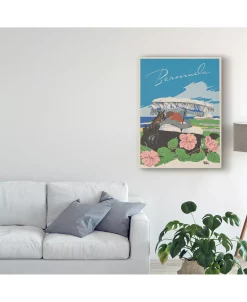 This ready to hang, gallery-wrapped art piece features an illustrative travel poster for South Africa showing a landscape. Gallery-wrap is a method of wrapping an artist’s canvas around a hidden, wooden frame allowing for a frameless presentation.