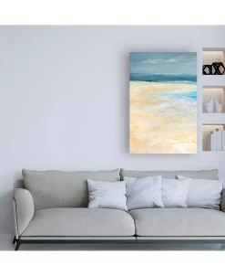 This ready to hang, gallery-wrapped art piece features a beach on the left side of the frame. Gallery-wrap is a method of wrapping an artist’s canvas around a hidden, wooden frame allowing for a frameless presentation.