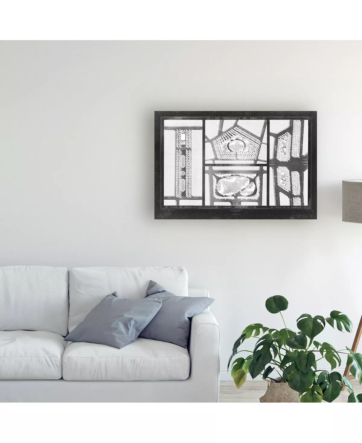 This ready to hang, gallery-wrapped art piece features a gray architectural blueprint filling the frame. Gallery-wrap is a method of wrapping an artist’s canvas around a hidden, wooden frame allowing for a frameless presentation.