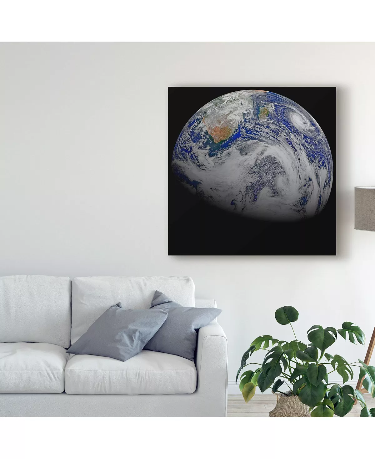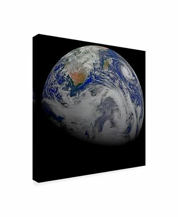This ready to hang, gallery-wrapped art piece features the earth in space. Gallery-wrap is a method of wrapping an artist’s canvas around a hidden, wooden frame allowing for a frameless presentation.