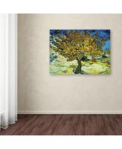 This ready to hang, gallery-wrapped art piece features a tree in the center of the frame in an expressionist style. Gallery wrap is a method of stretching an artist’s canvas so that the canvas wraps around the sides and is secured a hidden, wooden frame this allows for a frameless presentation of the finished painting.