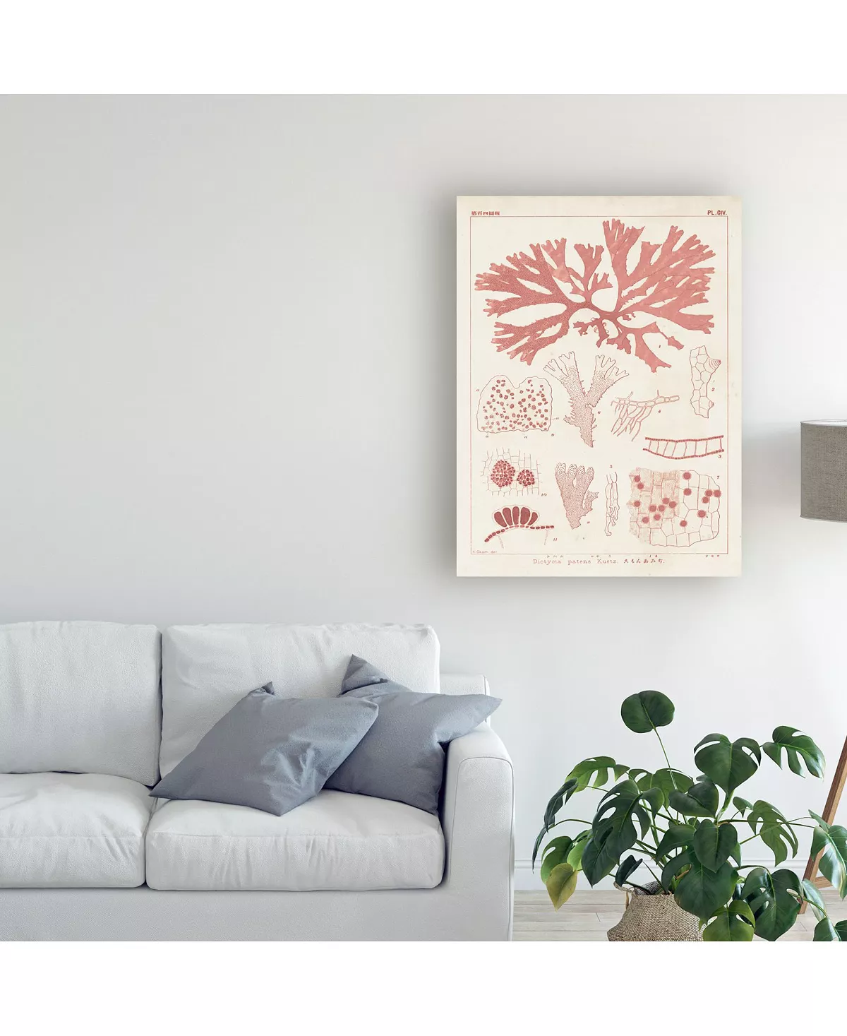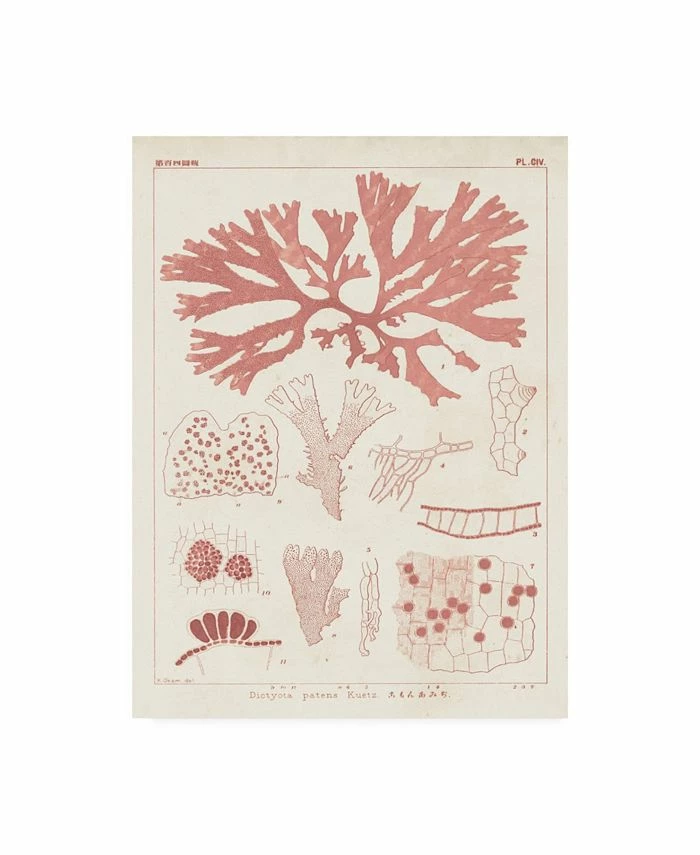 This ready to hang, gallery-wrapped art piece features a vintage red illustration of coral. Gallery-wrap is a method of wrapping an artist’s canvas around a hidden, wooden frame allowing for a frameless presentation.
