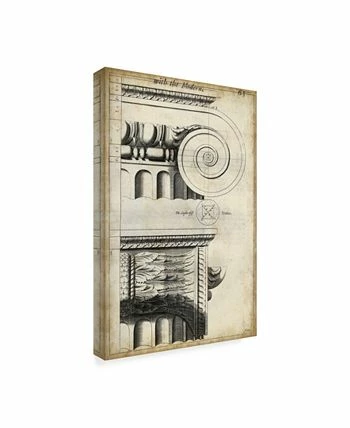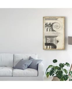 This ready to hang, gallery-wrapped art piece features stone columns over a blueprint page. Gallery-wrap is a method of wrapping an artist’s canvas around a hidden, wooden frame allowing for a frameless presentation.