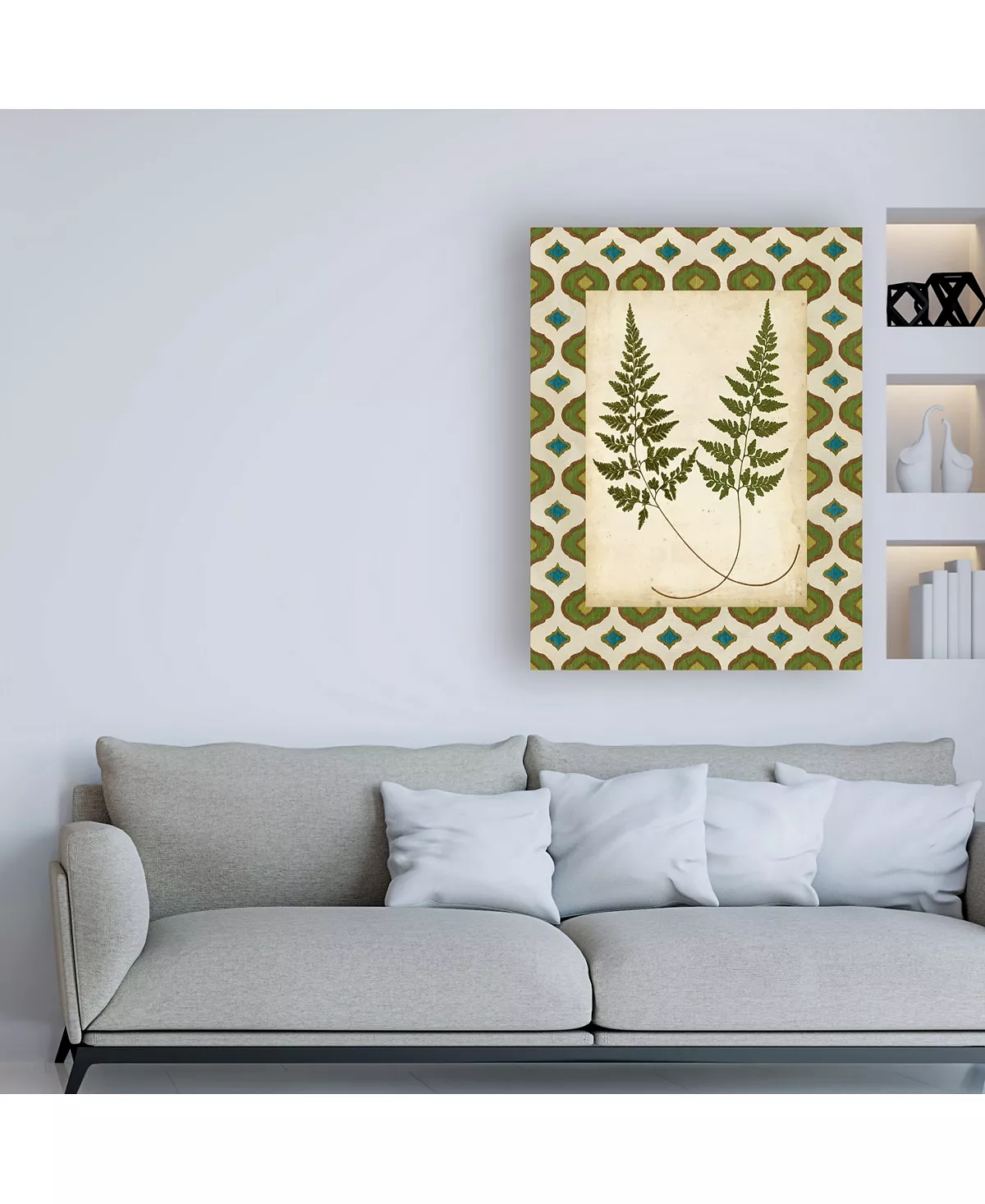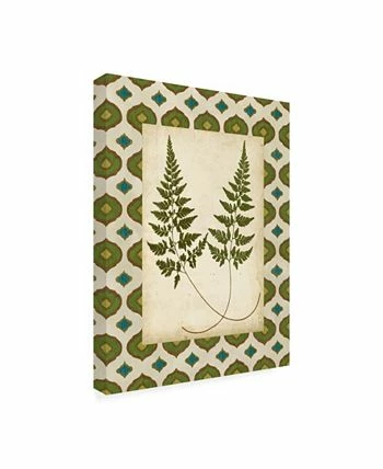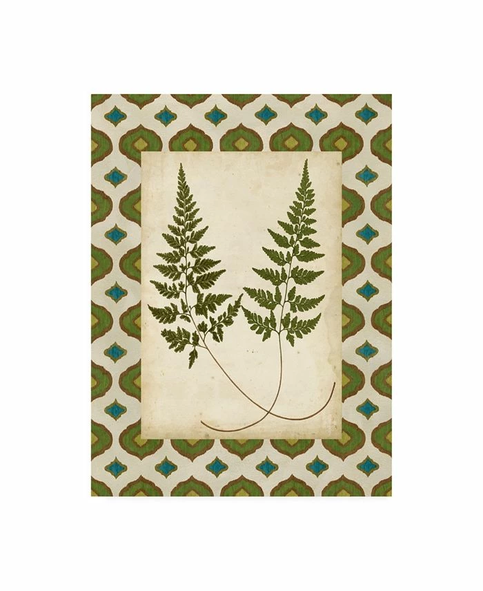 This ready to hang, gallery-wrapped art piece features green fern leaves in a shape pattern frame. Gallery-wrap is a method of wrapping an artist’s canvas around a hidden, wooden frame allowing for a frameless presentation.